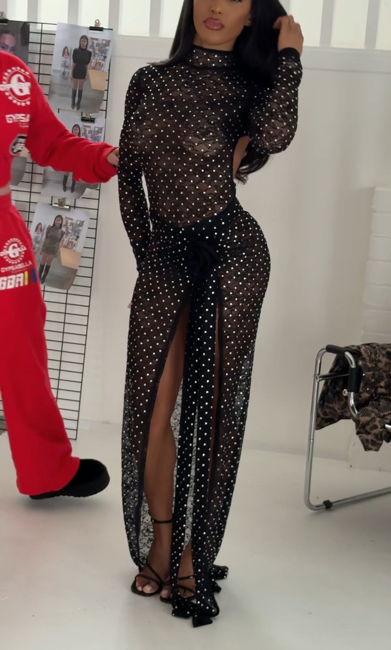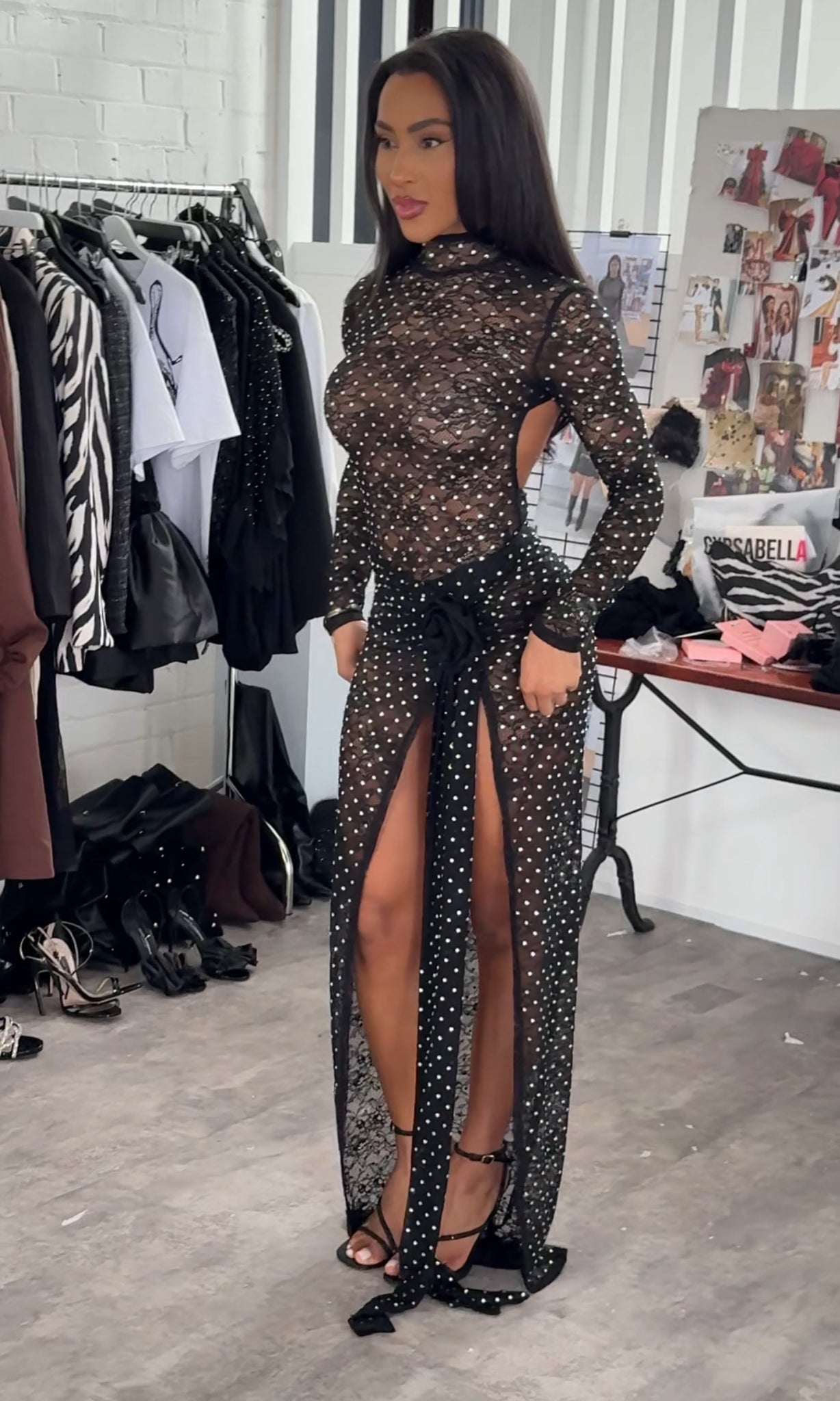 Shine from every angle in our Diamante Mesh Maxi Skirt — the ultimate statement piece for your next night out, festival, or glam event.